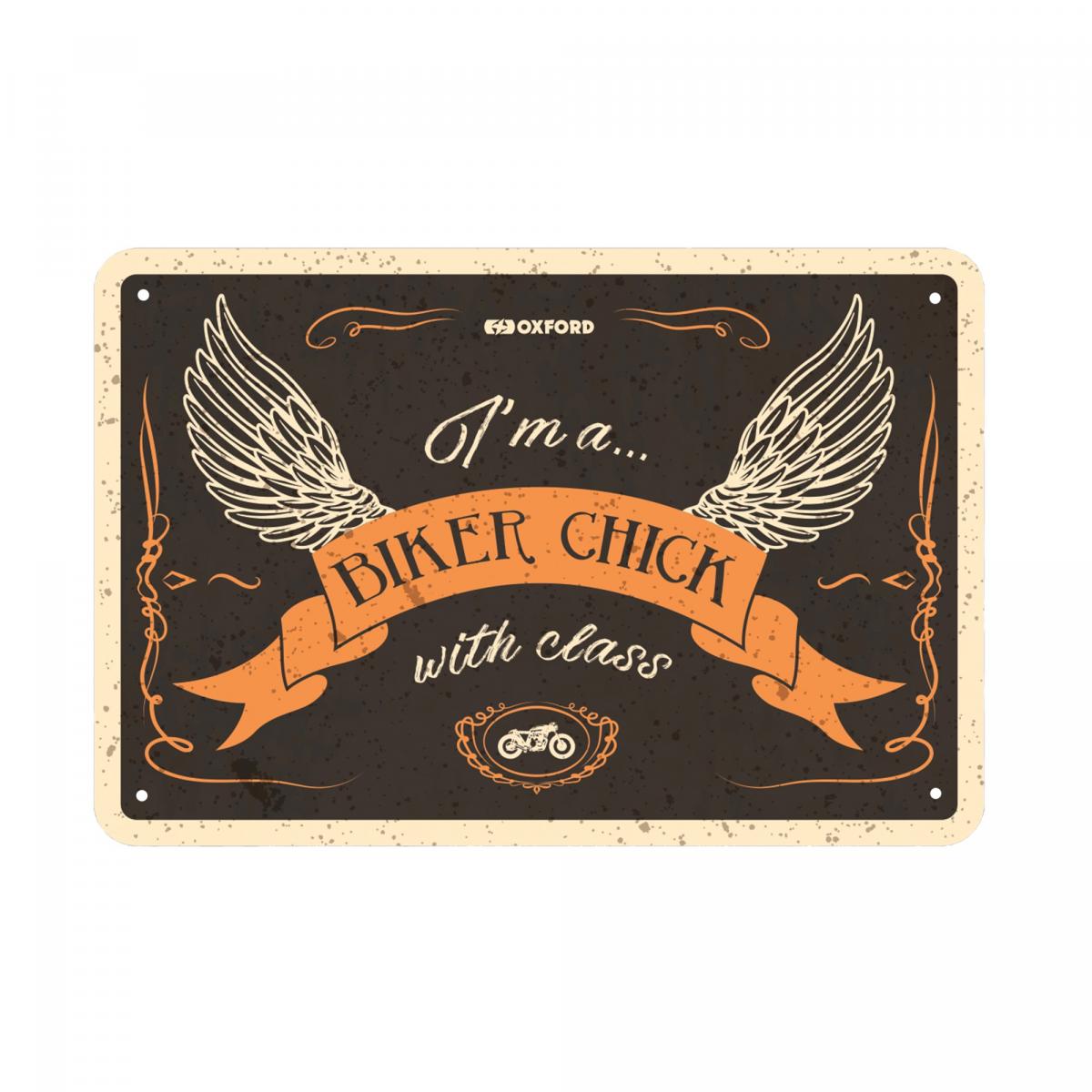 Oxford Garage Metal Sign: Biker Chick With Class OX367