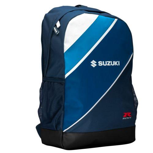 Robust backpack in contrasting blue tones, with Suzuki and GSX-R logo, additional inside laptop compartment, size approx. 49 x 31 x 15 cm, outside 100% nylon / lining 100% polyester.