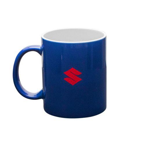 Blue mug with Suzuki and GSX-R logo, white glazed inside, dishwasher and microwave safe, volume 300ml, 100% ceramic.