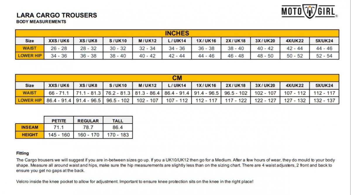 It's no secret who these cargo trousers were named after and once you put these on, you'll feel as kick-ass & adventurous as her when you're on your bike!  These Lara's are great with boots, or long enough to go over ankle boots or shoes.  Wear as casual when off the bike, they will become your favourite trousers!
